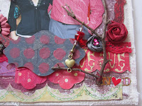 Не смотря на то,что скрап бумага для моей заготовки уже имеет потертый фон, я по краям прошлась наждачной бумагой, потом ножницами, кое-где смяла и порвала чуток. затонировала ухой кистью белым акрилом, те же манипуляции акрилом и потрепыванием с тканью и мини квадратиком...и получилась у меня вот такая заготовка!